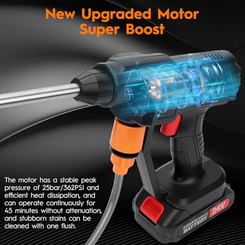 【Powerful Cordless Pressure Washer】Tired of tangled hoses and limited reach? Meet the housiwill cordless pressure washer, your go-to solution for powerful and portable cleaning! It’s robust motor projects water up 6 to 10 meters, making it easy to quickly clean your car and all your outdoor spaces and equipment. Designed for complete freedom, it's lightweight and cordless.