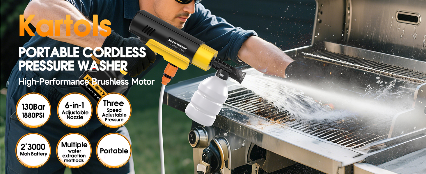 Cordless Pressure Washer, 130 Bar Portable Power Washer