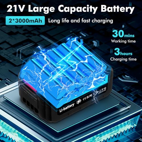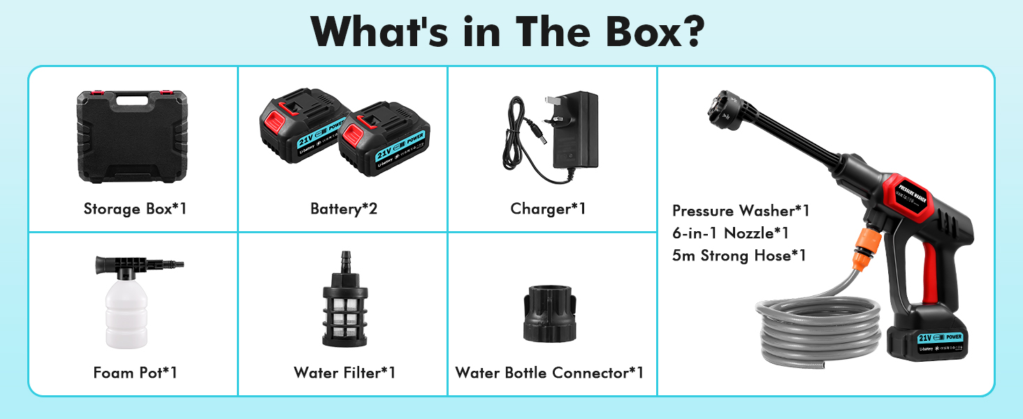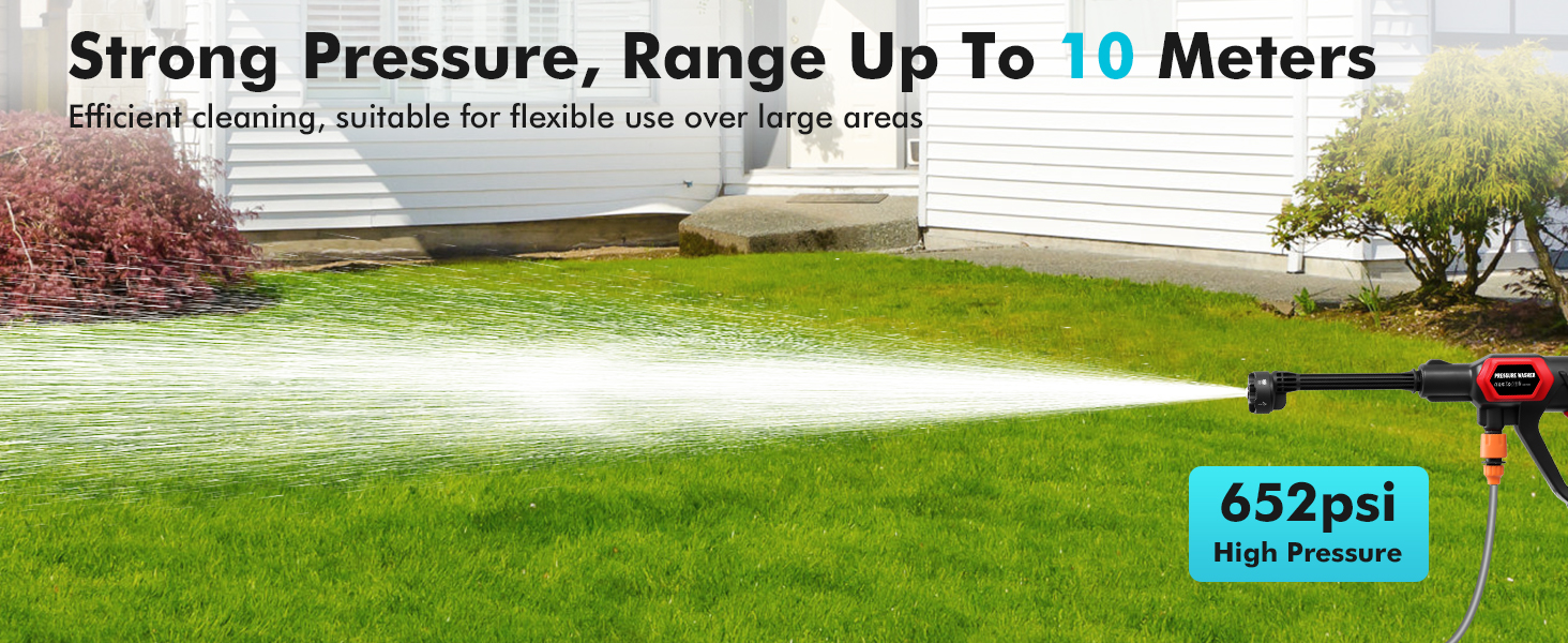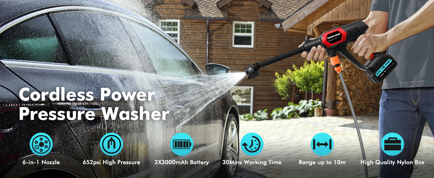 [Long-Run Dual Battery System | Power That Lasts] Never stop cleaning. This cordless pressure washer comes with TWO high-performance 21V 3.0Ah lithium tool batteries—each delivering 30-50 minutes of consistent runtime, even under high pressure. Features a clear battery indicator so you always know the charge level. Built to outperform capacitor-based models, it’s ideal for large patios, multiple vehicles, or full outdoor deep cleans.