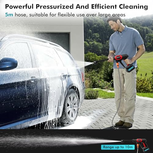 Cordless Pressure Washer 1500W with 2 * 3Ah Batteries, 21V Handheld Pressure Washer Kit, High Pressure Washers with 6 in 1 Nozzle and 5m/16.5ft tube for Car Gardening
