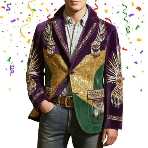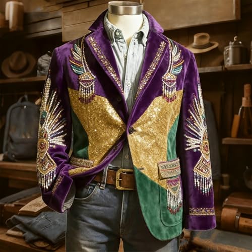 Corduroy Jacket Men's Suit Jacket Carnival Costume Men 80s Outfit 70s Hip Hop Disco Hippie Blazer Casual Jacket with Print Retro Funny Tuxedo Corduroy Outdoor Jacke
