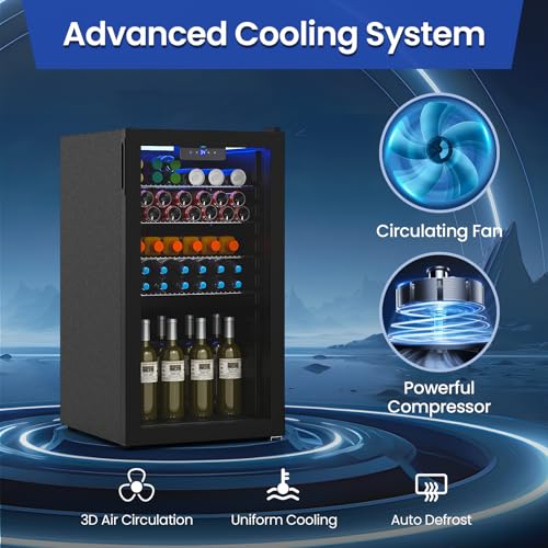 - 【Advanced Cooling System】 Featuring a high-performance compressor and circulating fan, this beverage refrigerator cooler provides excellent 3D air circulation for efficient and even cooling. The auto-defrost technology promises your drinks are perfectly chilled every time.