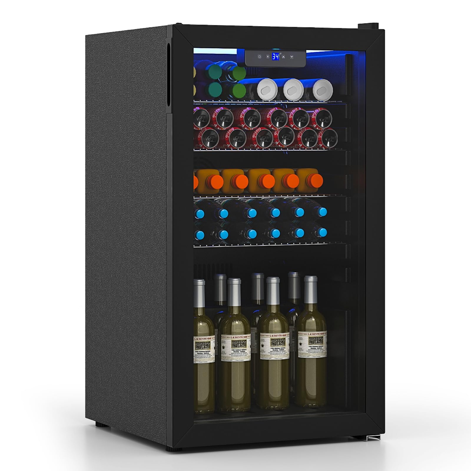 COSTWAY 78L Mini Fridge, 116 Can Quiet Frost Free Fridge with LED Light, 4 Adjustable Removable Shelves, Glass Door and Temperature Control, Freestanding Wine Beverage Drink Cooler for Home Ba