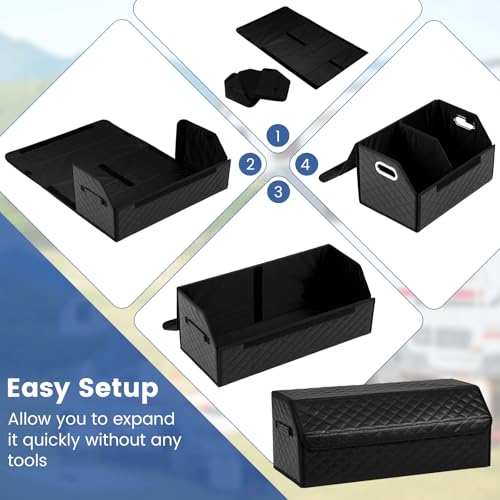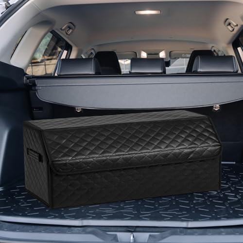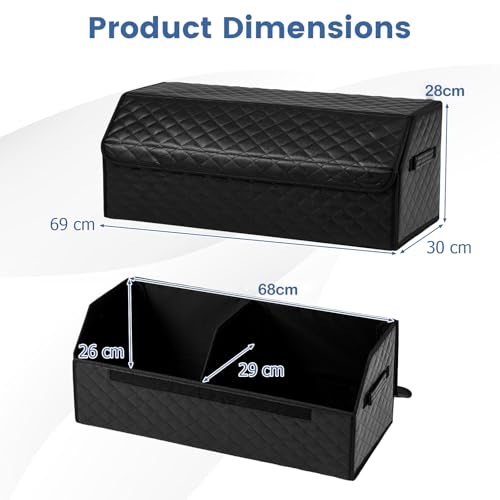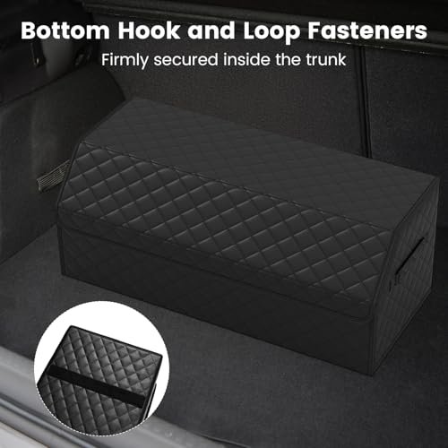 【Premium Construction Materials】 The outer shell of this car trunk storage is crafted from high-quality PVC leather that wipes clean with a single swipe. Additionally, the cushioned sponge and supportive cardboard absorb shocks, keeping its shape and protecting delicate items.