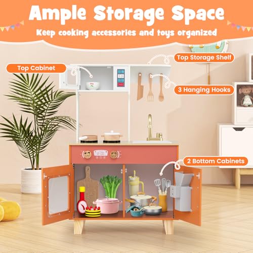 COSTWAY Kids Wooden Kitchen, Pretend Play Kitchen with Microwave, Burners, Faucet, Sink, Ice Dispenser & Accessories, Children Cooking Toy Chef Role Playset for Boys Girls Ages 3-6