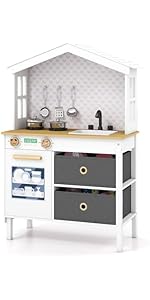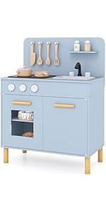 - 【Reliable & Sturdy Construction】Built from sturdy natural grass-tree wood, the play kitchen for kids is designed for lasting performance and maximum kid safety. Thoughtful features like rounded corners and a smooth surface ensure peace of mind for parents.