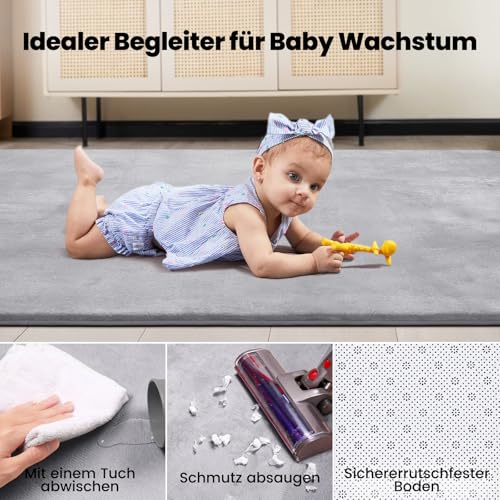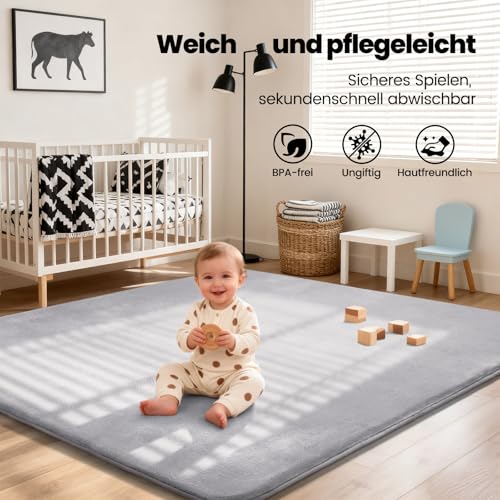 Crawling Mat Baby 150 x 180 cm, 3 cm Thick Foam Play Mat, Ultra Soft Support and Plush Feel Carpet Children's Room Easy Care Crawling Blanket Baby with Non-Slip Underside, Grey