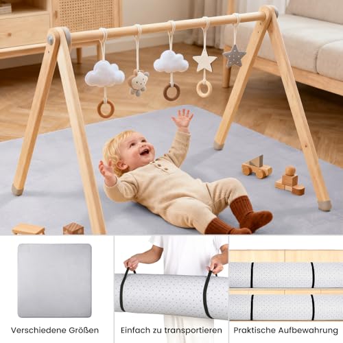 Versatile and versatile: Our crawling blanket can be rolled up to save space thanks to two elastic bands and is therefore easy to store and transport. This play mat is suitable for various indoor and outdoor environments – playpens, children's tents, children's rooms, living rooms and even outdoor playgrounds. Whether crawling, playing, telling stories or sharing activities with your child, this rug provides plenty of space for your baby's development.
