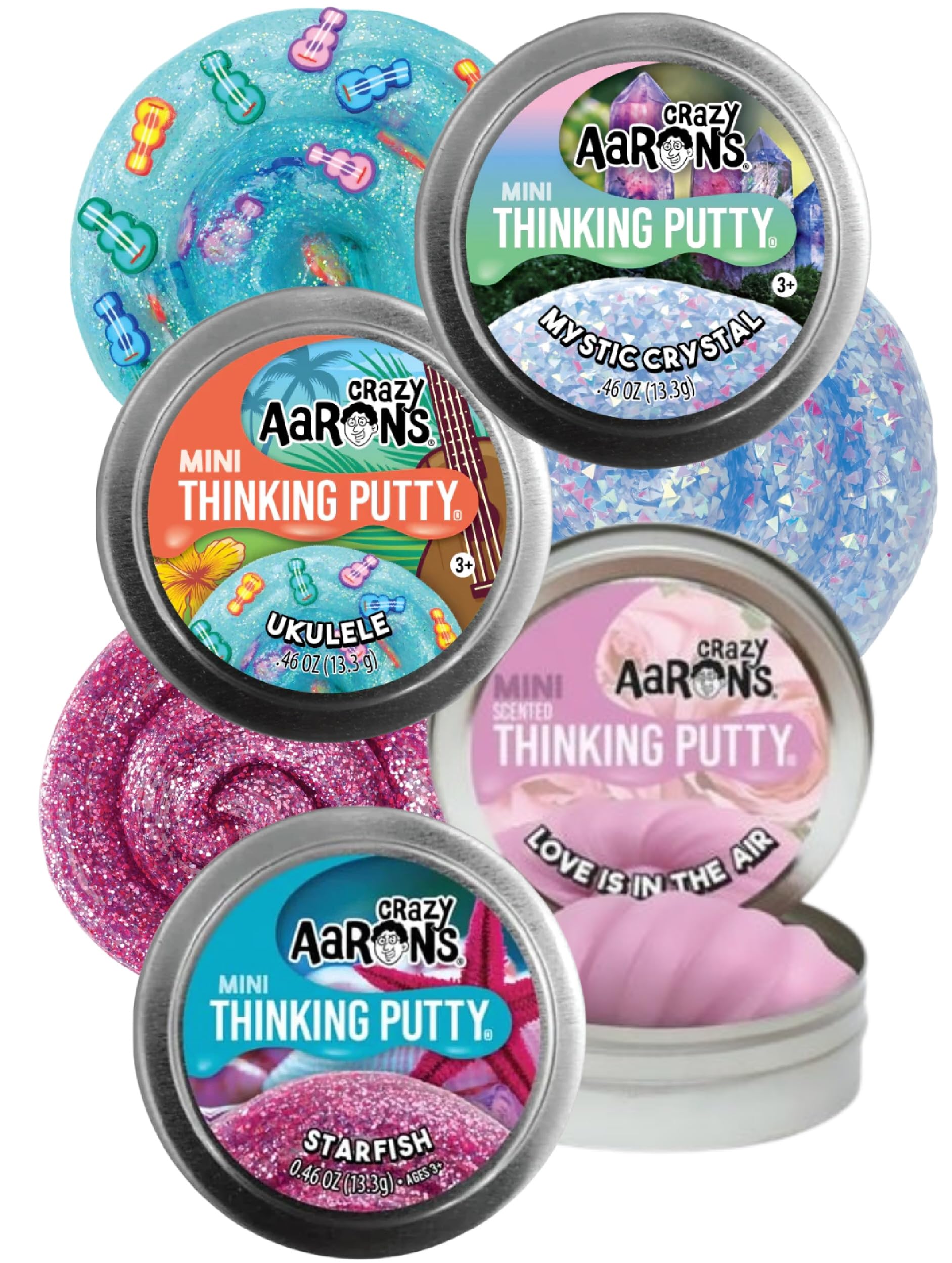 - ✅ Includes 4 Unique Mini Tins – This special Crazy Aaron’s Putty gift set includes 4 mini tins: Mystical Crystal, Ukulele, Starfish, and Love is in the Air (13.3g / 0.47 oz each), perfect for gifting or collecting.