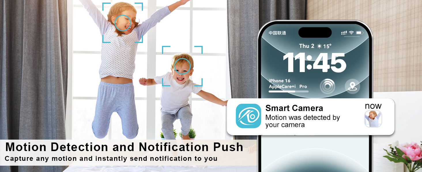 【Smart Motion Detection with Alerts】This mini hidden camera sends instant phone notifications the moment motion is detected. Detects precise relevant movement patterns and reduces error messages due to light changes or small animals by up to 70%, making this advanced motion-activated camera ideal for pet monitoring, door surveillance, and complete home security protection.