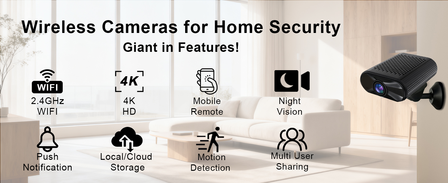 【2025 Ultra HD Mini Camera】This mini wireless camera combines starlight sensor technology with infrared LED night vision to capture clear black and white images within a range of 10 meters. As the indoor security camera, it integrates flagship-grade day and night monitoring into one compact device. It delivers genuine 24/7 uninterrupted protection as a reliable wireless security camera.