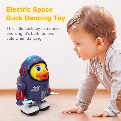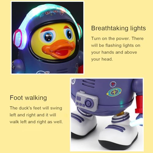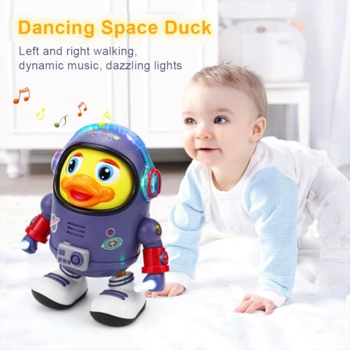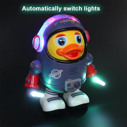 Dancing Astronaut Duck Toy with Music & LED Lights, Musical Baby Toys for Toddlers 1 2 3 Years Old, Light-Up Space Duck Walking Toy for Kids, Interactive Educational Gift for Boys & Girls