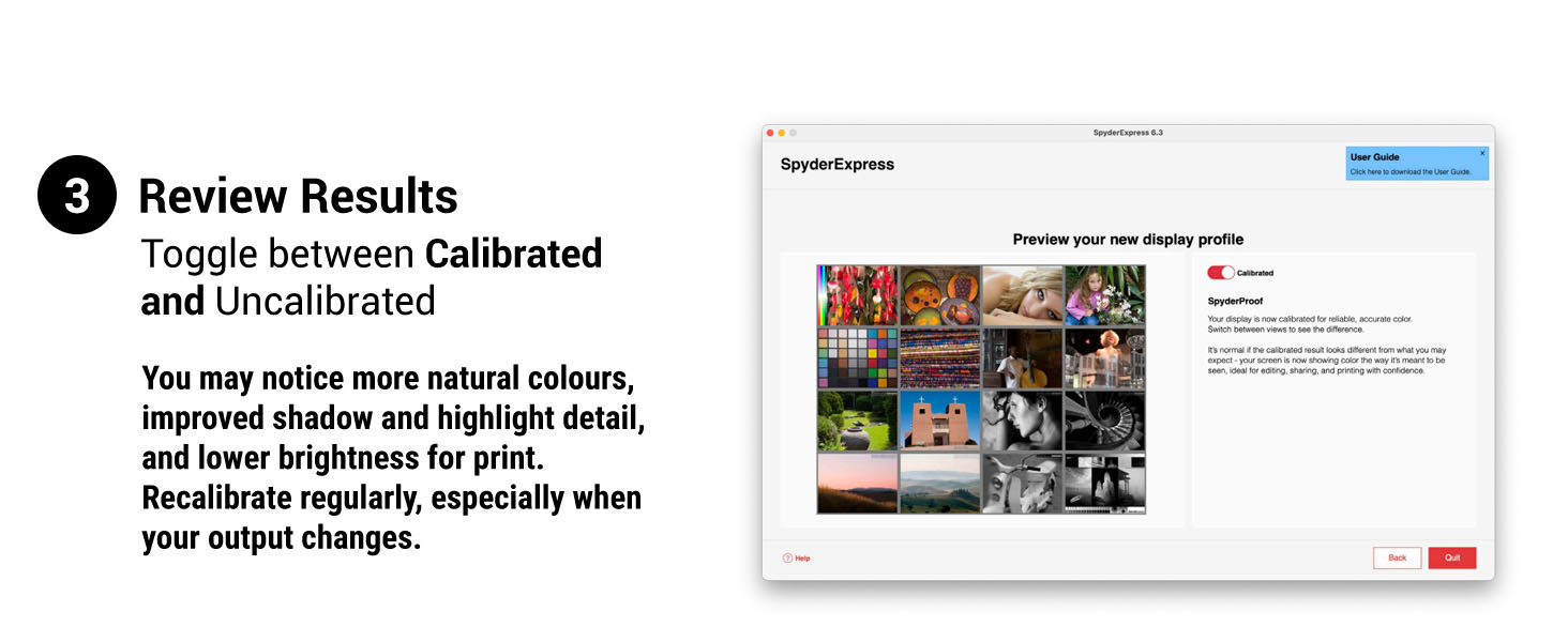 - QUICK & EASY COLOUR CALIBRATOR: Achieve lifelike colours in digital and print with SpyderExpress; Our software upgrade lets you enjoy cutting-edge tools, smarter workflows, and unrivalled calibration capabilities – now available in our usual platforms