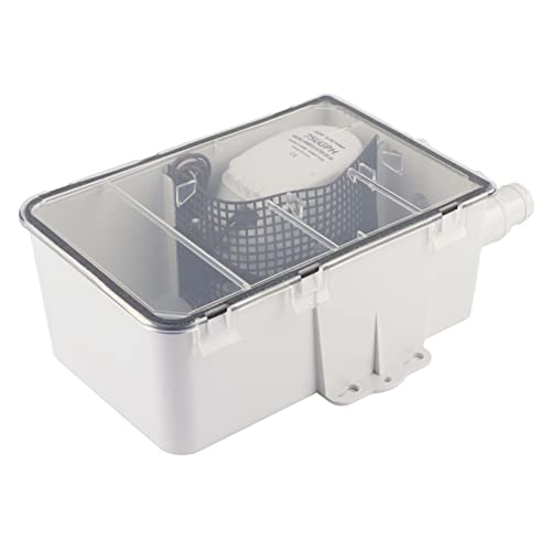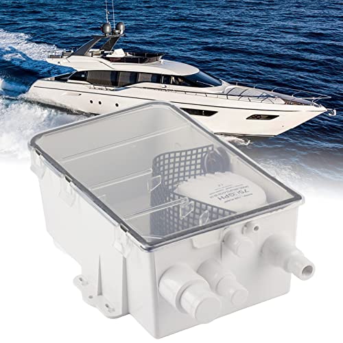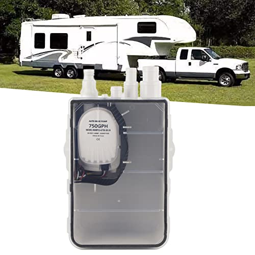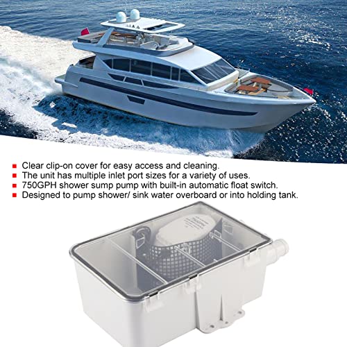 DC 12V/24V Shower Pump, 750GPH Shower Sump Pump with Multi Inlet, Clear Clip-On Cover, Easy to Use & Clean, Automatic Shower Pump System for Marine Boat Yacht G750‑01 (24V)