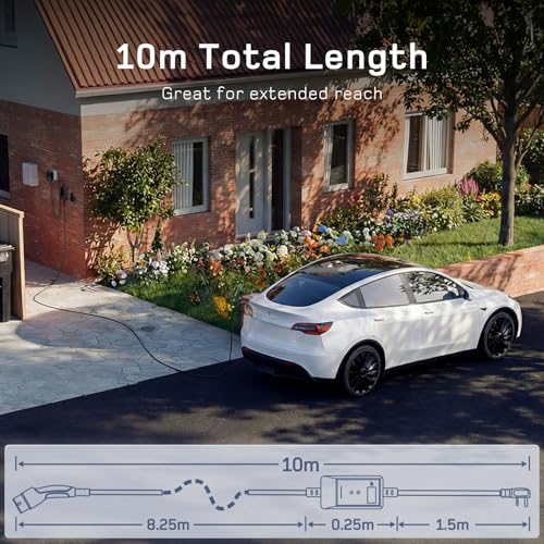 【Dual-Button Control & Adjustable Current】 Easily adjust the charging current (6/8/10/13A) to suit different power conditions. The 13A setting is intended for short-duration charging. Use the second button to set a delay timer (0.5–8 hours) and charge during off-peak hours. Note: Do not use extension leads. Ensure the wall socket is in good condition. Reduce the charging current if required.