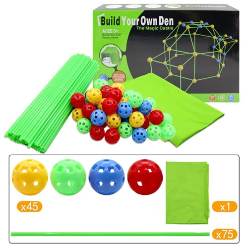 - Versatile Den Building Kit for Kids: Foster your child's creativity with our innovative Den and Fort Building Kit. Utilizing sturdy sticks as beams and balls as connectors, kids can construct imaginative structures such as forts, play tents, rockets, horses, igloos, princess castles, tunnels, and more.