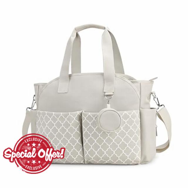 : The Diaper Tote is made of durable polyester fabric. Its spacious design provides ample storage space for mothers.