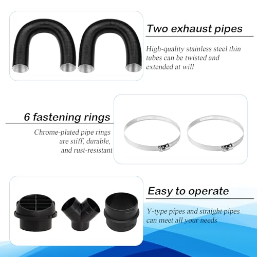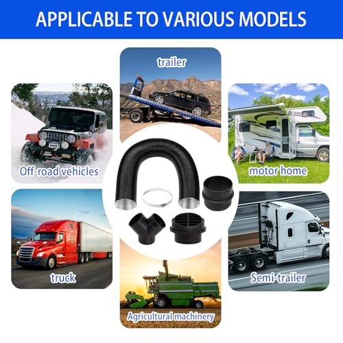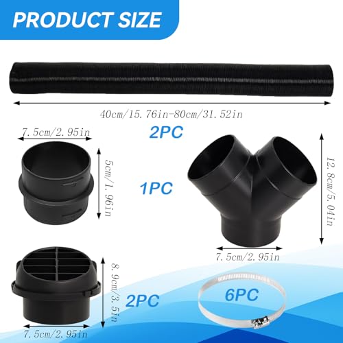 All-in-One Package: Comes with everything you need: 2 × 75mm flexible Diesel Heater Ducting pipes, 3 × 75mm vent outlets, 1 × 75mm Y-connector and 6 × hose clamps. A complete accessory kit for hassle-free setup.