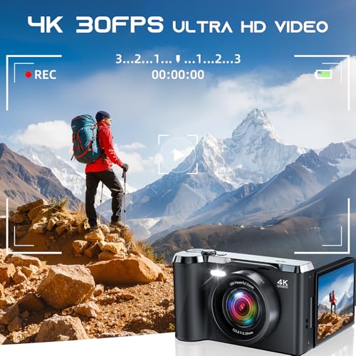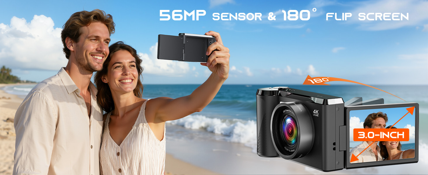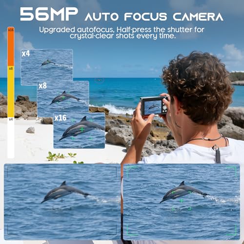 【4K FHD Video & 48MP Photo Capture】Equipped with 4K video recording and 48MP high-resolution photo capture, this digital camera effortlessly takes sharp, smooth images—boasting professional-grade clarity, vibrant colors, high contrast, and lifelike details. Perfect for family gatherings, birthdays, or casual weekend get-togethers, it helps you preserve everyday memories as a user-friendly point-and-shoot camera