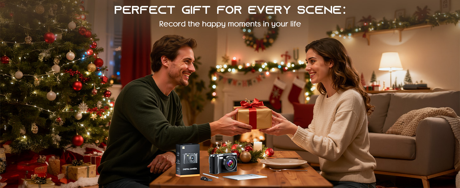 【Easy to Operate & Ideal Gift Choice】This compact digital camera features simple operations and is ready to use right out of the box. Capture precious moments and create lasting, love-filled memories with it—whether at birthday parties, picnics, concerts, graduations, or during travels. It’s a great choice for kids, students, adults, and photography beginners. Plus, it comes in premium packaging, and makes a perfect Christmas gift, birthday gift, or holiday present