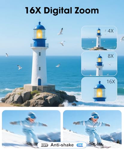 【16X Digital Zoom & Multifuctional Compact Camera】This small mini camera features a 16x zoom, making it ideal for capturing distant subjects. This travel camera also comes equipped with anti-shake, face detection, smile detection, continuous shooting, and flexible subject tracking, serving as the perfect choice for documenting family gatherings, friend meetups, and other joyful moments.