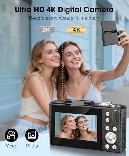 Whether you are an experienced photographer or a beginner or teenager, this 4K digital camera can meet all your shooting needs and easily capture vivid and emotional photos.