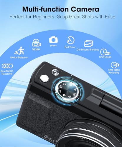 【64MP & 4K Digital Camera】This Digital Camera for Photography delivers 64MP high-resolution photos and 4K UHD video recording. Whether you're exploring nature's wonders or capturing the joy of family gatherings, this Point and Shoot Digital Camera guarantees you'll preserve every precious moment with stunning clarity and breathtaking detail.