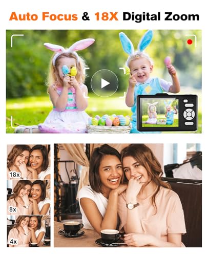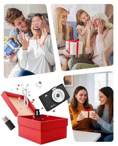 Suitable for Anybody Any Scene:You can use the digital camera to take photos and vlogs at birthday parties, picnic parties, concerts, graduations and travel. No photography skills are required for this digital camera, just press the shutter lightly, it's a great camera for kids, students, adults, seniors and beginners, perfect as a christmas gift, birthday gift, holiday gift!