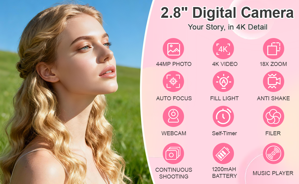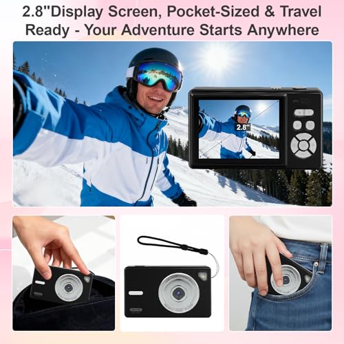 1080P 44MP Compact Digital Camera: This digital camera with Full HD 1080P resolution and 44MP allows you to capture HD videos and photos. In addition, the camera is paired with a powerful CMOS processor and image stabilization to ensure that photos taken are clear and lifelike, and that you are ready to capture the best moments of your life anywhere, anytime