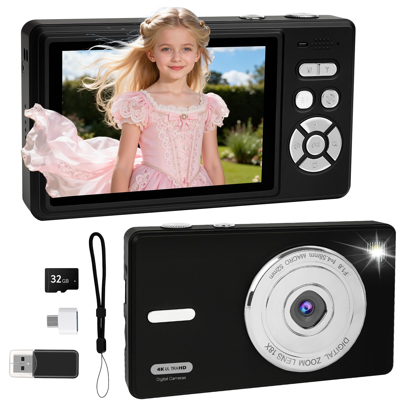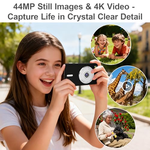 Digital Camera 4K – Autofocus Compact Cameras with 32GB SD Card 44MP Portable Mini Small Photo Camera with 2.8″ LCD Screen 18X Digital Zoom Vlogging Camera for Students, Teens, Beginners (Black)
