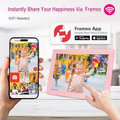 【Showcase Your Memories in Brilliant HD】: The digital photo frame features a sharp 1280×800 resolution IPS screen that delivers true-to-life colors and wide viewing angles, making every photo looks great. The Frameo digital photo frame supports picture format by JPG/JPEG/BMP/PNG and video format by MP4