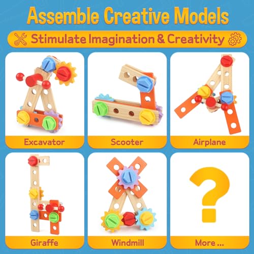 【Creative Building Game】Children can use kids tool set all parts to build various models such as excavator, sword, fish, windmill, motorcycle, giraffe, airplane, dog, etc. Children toys games can cultivate children's imagination and improve their hands-on ability and problem-solving ability.
