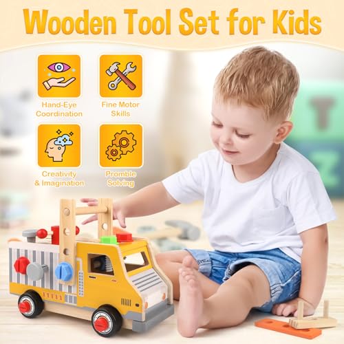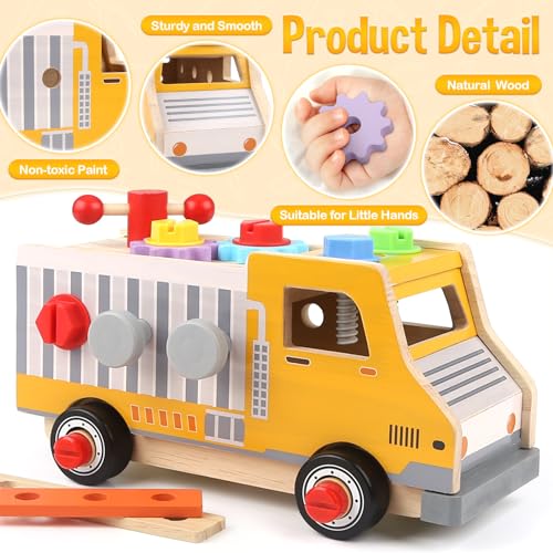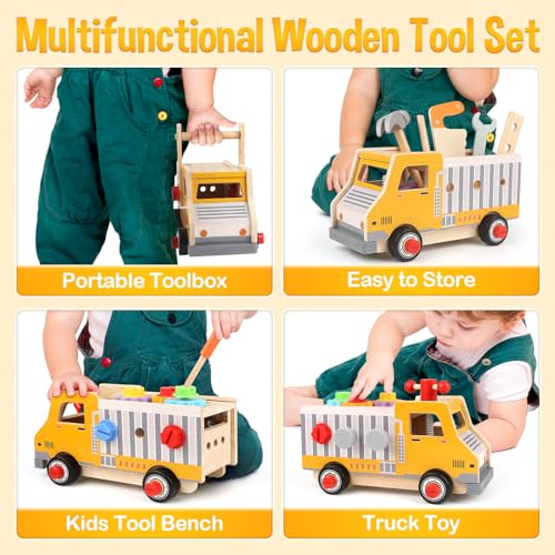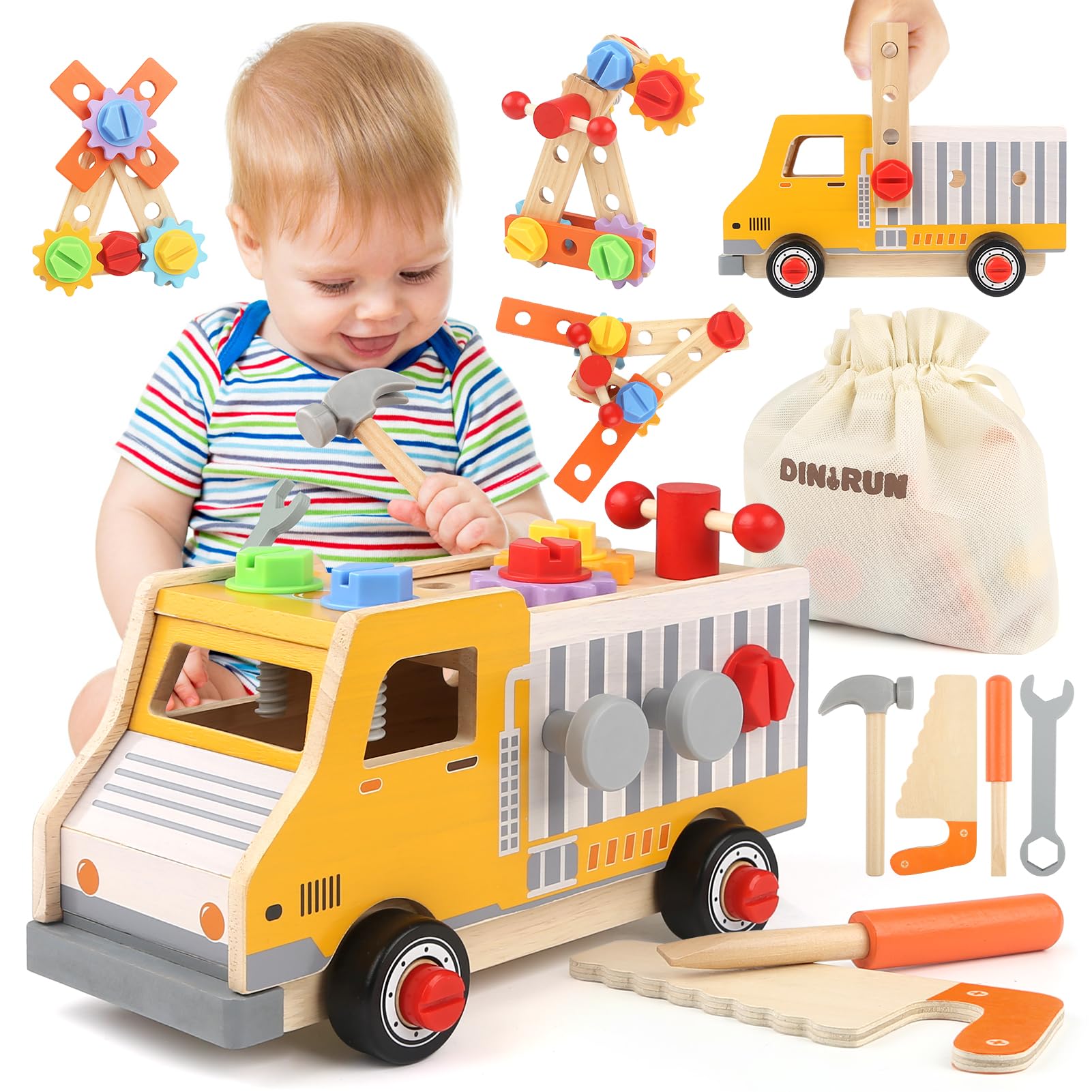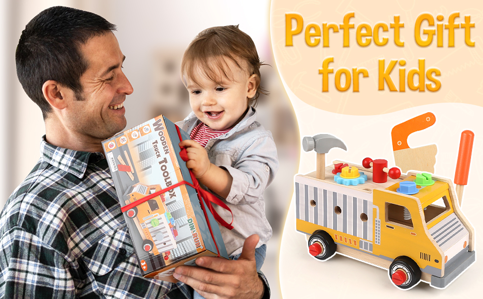 【Gifts for 2 3 4 5 Years Old Boys Girls 】DINORUN wooden tool set for kids are made of solid wood, which is safe and durable. The edges and corners of the wooden toys are carefully polished to protect the baby's tender hands. This is the best preschool toy, the best birthday gift or Christmas present, or a surprise gift for your child.