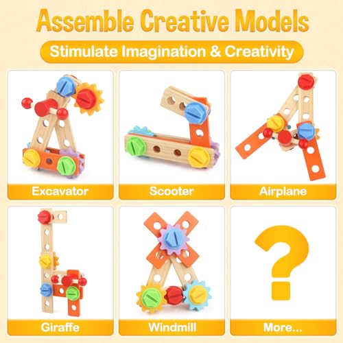 【Creative Building Game】Children can use kids tool set all parts to build various models such as excavator, sword, fish, windmill, motorcycle, giraffe, airplane, dog, etc. Children toys games can cultivate children's imagination and improve their hands-on ability and problem-solving ability.