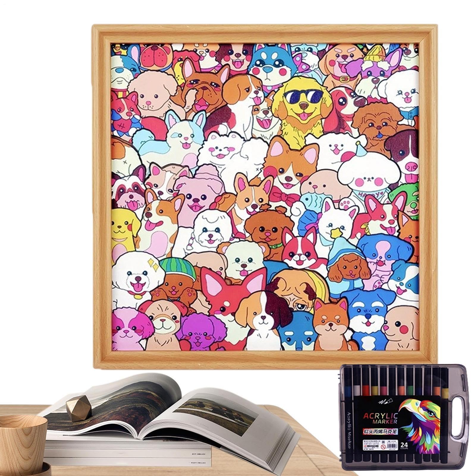 DIY Coloring Dog Picture Frame | Interactive Wooden Dog Frame,Cute Table Decor Puzzle | For Kids Girls Animal Lovers Family Gatherings Game Night Holiday Birthday Indoor Activities