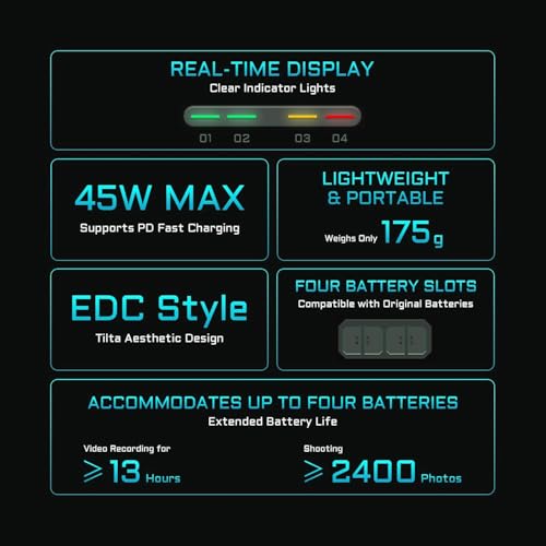 - USB-C FAST CHARGING Provides maximum 45W Power to Charge Four Batteries in 3 Hours. (Must use 45W+ PD Charger & compatible cable for high speeds)