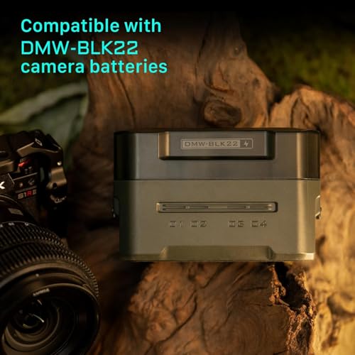- With the ability to fully charge four DMW-BLK22 batteries, users will be ready for up to 13 hours of video recording or enough power to handle 2,400 photos, perfect for long shooting sessions.