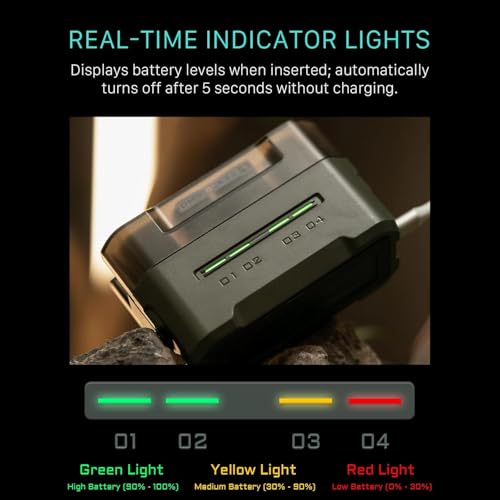 - FOUR SLOTS Allow Users to Charge Four Batteries Simultaneously