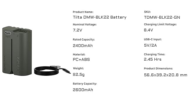 - UNIVERSAL DESIGN Compatible with Panasonic, Tilta and Most 3rd Party DMW-BLK22 Batteries