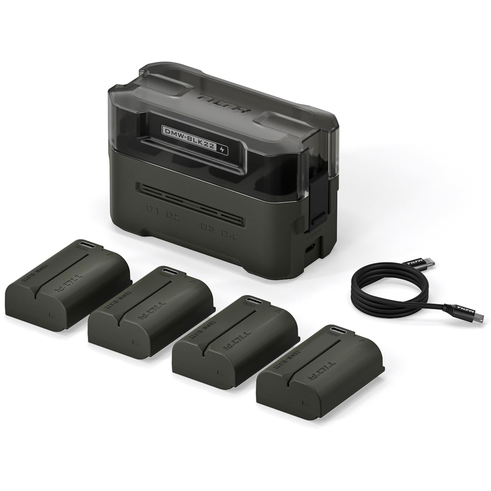 DMW-BLK22 Replacement Battery and Charger Set, 4 Pack 2400 mAh Batteries and Four Channel USB-C PD Fast Charger, Compatible with Panasonic Lumix S5, S5II, S5M2, S1RII, GH6, GH5II, G9M2 TBC-BLK22-B-GN