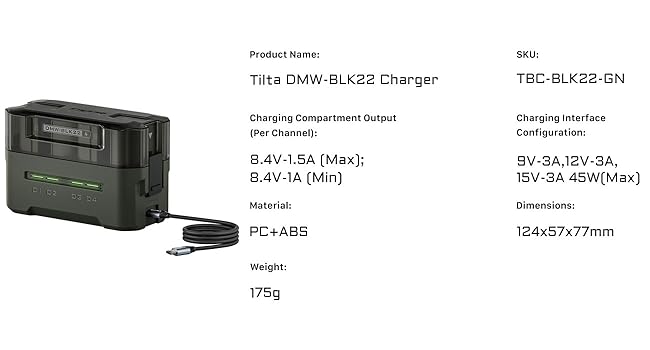 Tilta DMW-BLK22 Battery and Charger Set | TBC-BLK22-A-GN