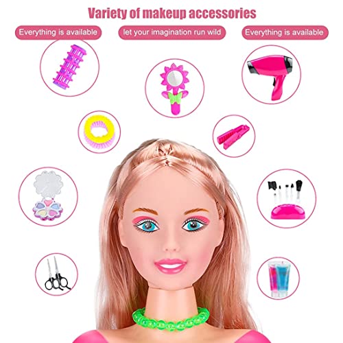 Doll Head For Hair Styling Kids, Deluxe Hairstyle Hair Makeup Doll Toys with Realistic, Professional Hairdresser Pretend Play Game Styling Head Kit for Little Girls and Kids