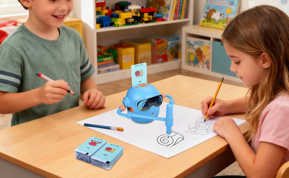 - Dynamic Skill Builder: With its ability to combine word lessons and artistic tracing, the robot drawing machine uses illustrated cards and voice guidance to create an engaging experience that lowers difficulty levels while improving memory retention in young learners