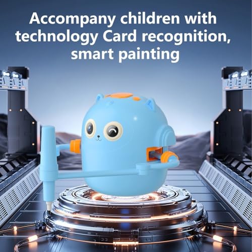Drawing Robot Toy with Voice Interaction, 100 Word Cards, Colorful Pens, Compact 125x110mm ABS Build, Ideal for Children’s Artistic Learning at Home(Blue)