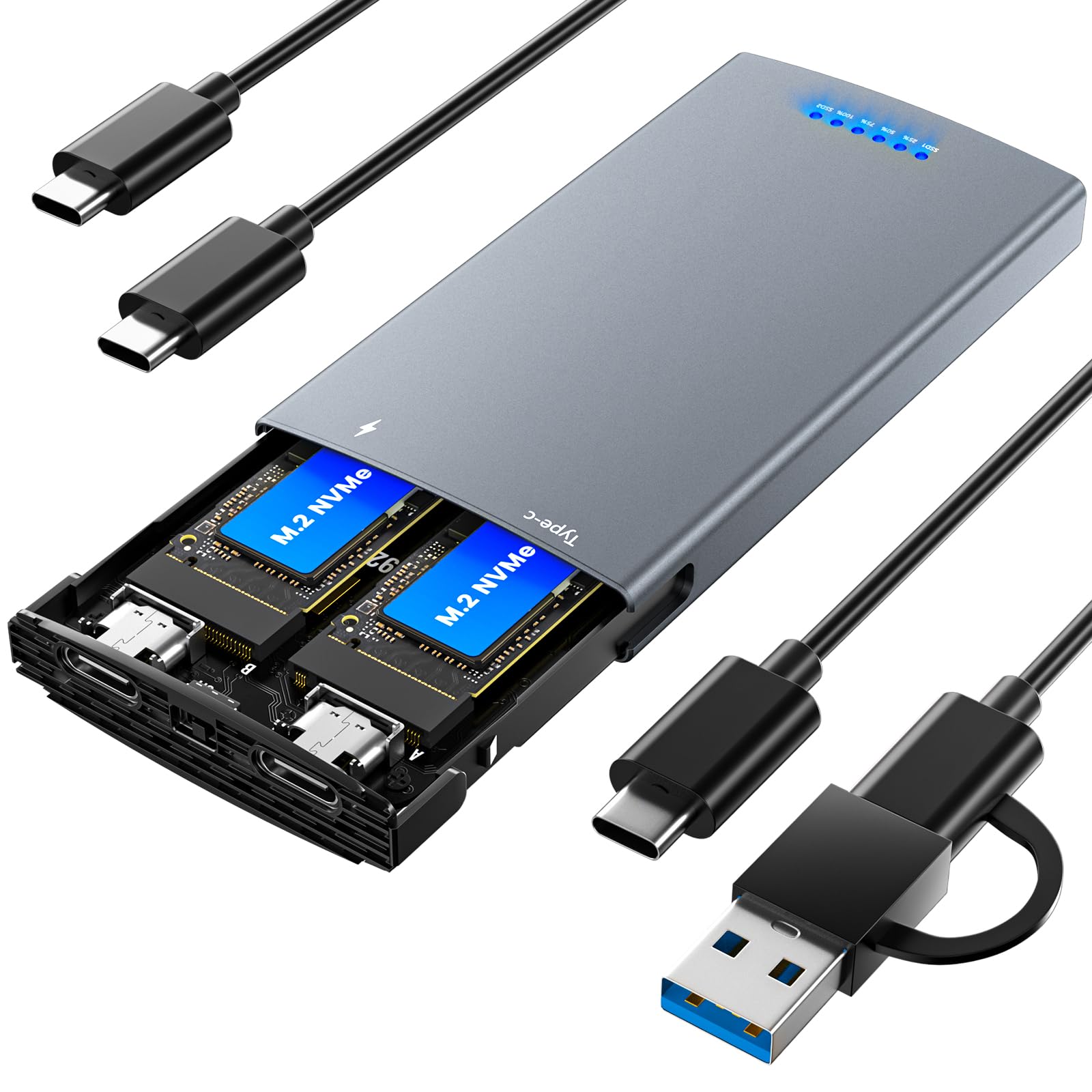 Dual Bay M.2 Nvme SSD Enclosure, 20Gbps External Drive
