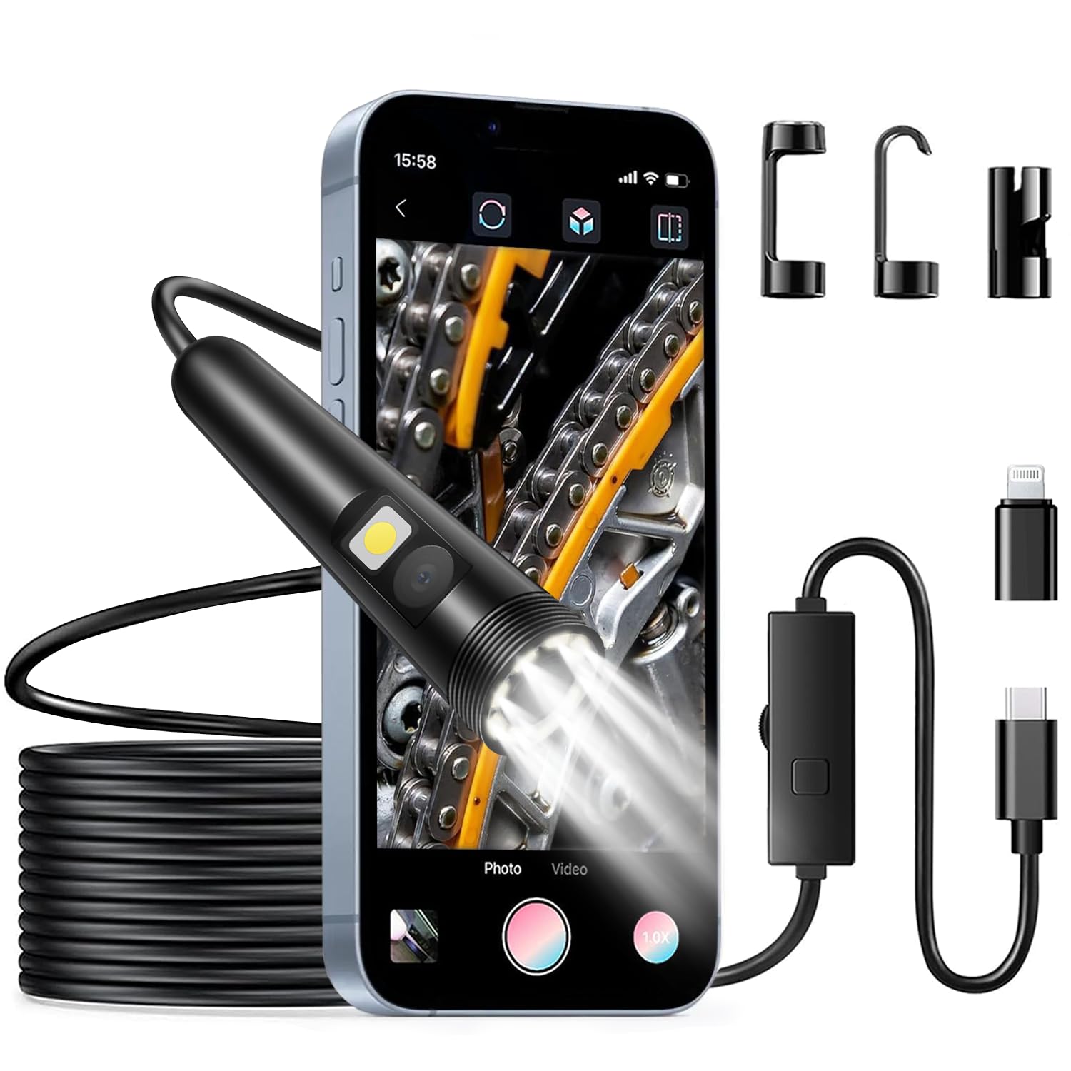 Dual Lens Endoscope Inspection Camera, 1080p HD Endoscope Semi-Rigid Inspection Camera with 8+1 Adjustable LED Lights, 7.9mm IP67 Waterproof Probe Borescope for Android and iOS (16.5 ft / 5 m)