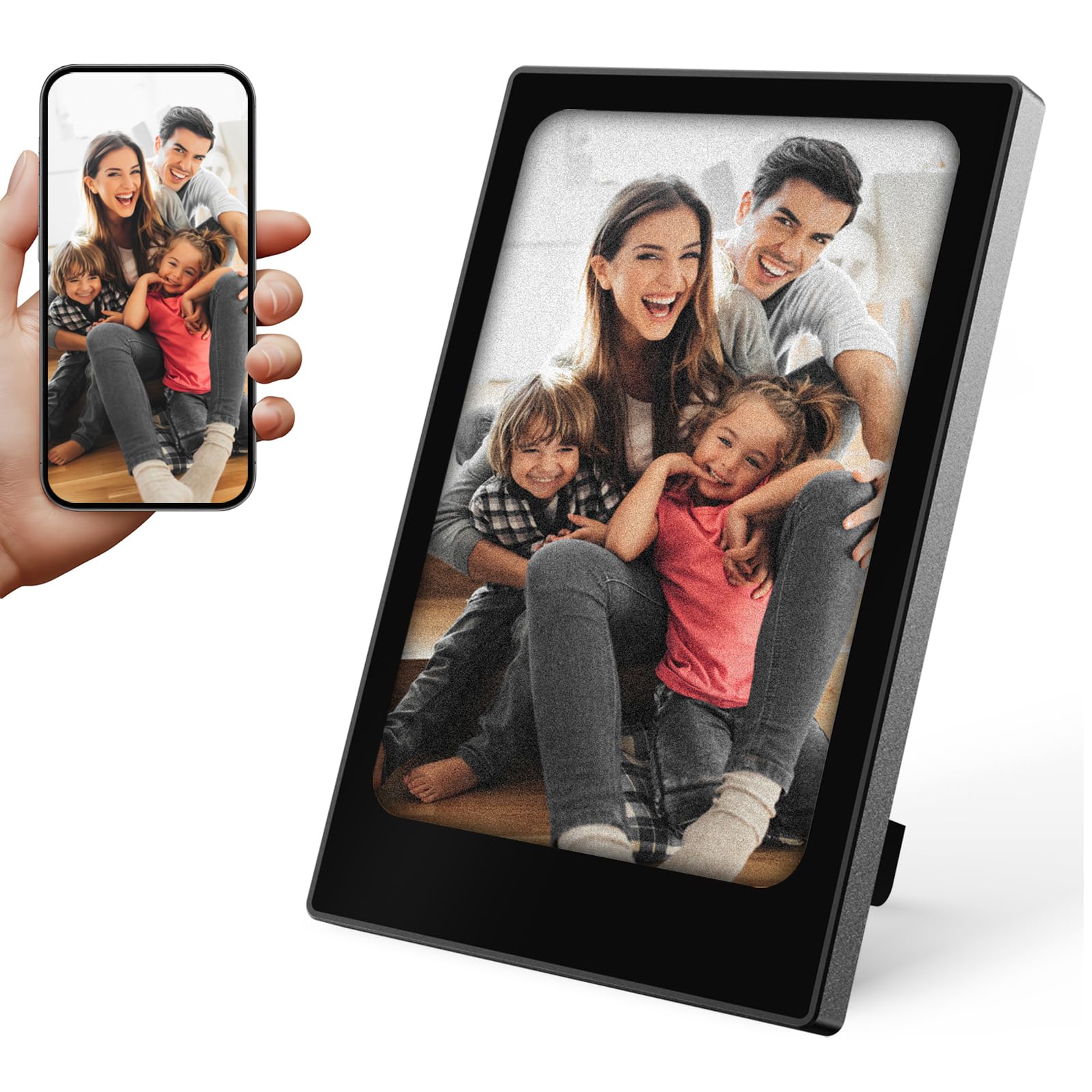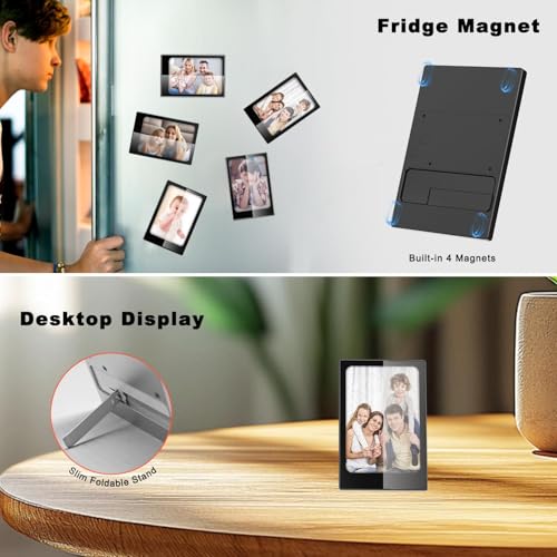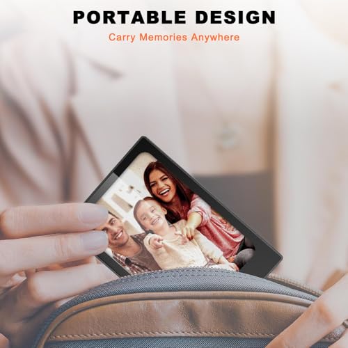 【ELEGANT & PORTABLE DESIGN】: Crafted with a seamless aluminum alloy shell, this digital picture frame combines durability with a lightweight, modern look. Its compact size makes it easy to carry or place anywhere—ideal for travel, desks, or shelves while adding a touch of sophistication to any environment