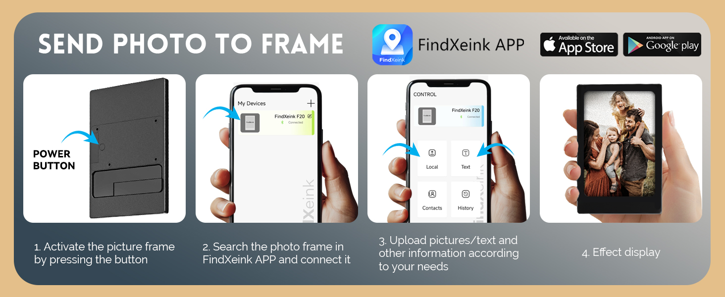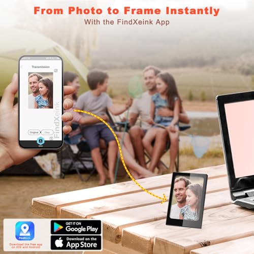 【BLUETOOTH-ENABLED & EASY SETUP】: Simply download the "FindXeink" app, connect via Bluetooth, and instantly upload photos from your smartphone. No cables, no complicated steps—just seamless wireless sharing. Keep your frame updated with new photos anytime, anywhere, making memory-sharing hassle-free