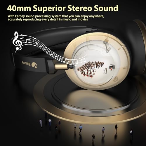- 【Extra-Long Battery Life & Unique Charging Base】Earbay wireless headphone with microphone comes with a large 500mAh battery that provides 50 hours of playback time and 200 hours of standby time, ensuring all-day efficiency and no more frequent charging. The bluetooth headphones with microphone comes with a plug-and-play charging base for easy placement and charging. These wireless headphones with mic give you the freedom of a hassle-free wireless experience with an incredibly fast 2-hour charge.