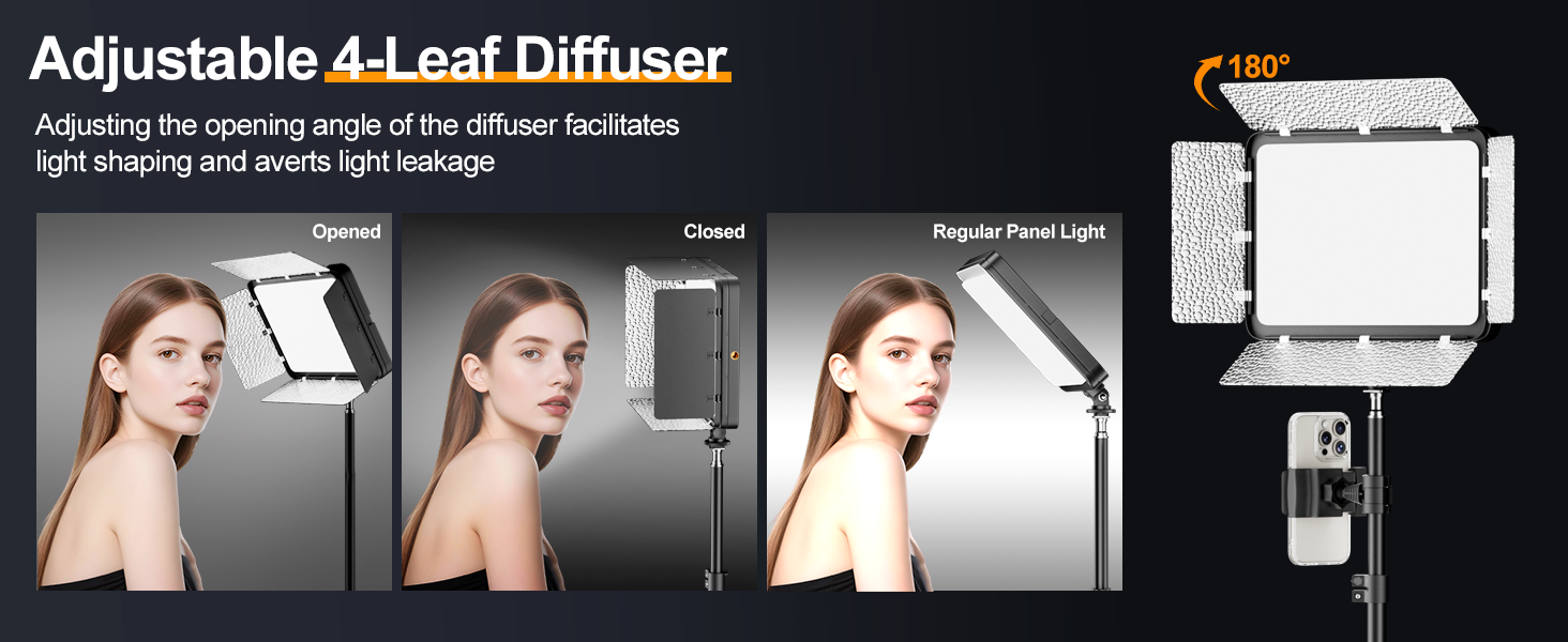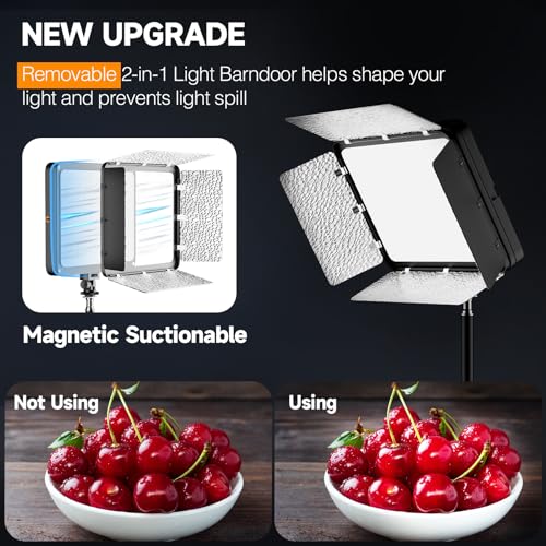[Compact Light Panel]: 25*20 cm panel with magnetic barn door (suppresses glare) and thickened diffuser (even light). Works with smartphones/DSLRs, powered via USB (5V/3A) by power bank or adapter—a versatile panel light that fits led lighting needs for recording